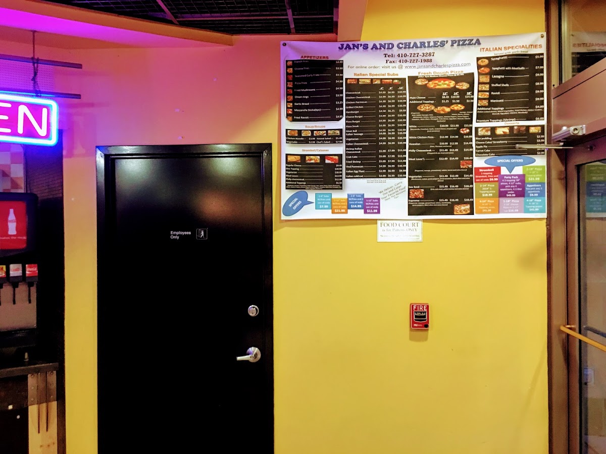 Overall, the menu at Jan’s & Charles’ Pizza offers a satisfying range of classic comfort foods that feel both familiar and indulgent. The selection of sides like French Fries, Curly Fries, Onion Rings, Mozzarella Sticks, and Jalapeno Poppers sets a strong foundation for any meal, while the hearty subs-such as the Cheesesteak Sub 8 Inch, Cheesesteak Sub 12 Inch, and Chicken Cheesesteak Sub 8 Inch-highlight the restaurant’s focus on generous, filling options. Seafood lovers can appreciate items like the Cheese Fish Sub 8 Inch and hot platters including the Popcorn Shrimp Basket and Butterfly Shrimp Basket. The sandwich lineup, featuring staples like the Hamburger, Cheeseburger, and Chicken Sandwich, keeps things simple yet satisfying. For something more unique, the speciality subs like the Shrimp Cheesesteak Sub 8 Inch and Shrimp Chicken Cheesesteak Sub 12 Inch add a creative twist. Of course, the menu wouldn’t be complete without pizza, with choices such as the 12 Inch Cheese Pizza, 14" Meat Lovers Pizza, and 16 Xlarge Cheese Pizza catering to different appetites. While specific prices aren’t listed here, the variety and classic appeal of the dishes make this menu feel approachable and well-suited for both quick takeout and casual indulgence.